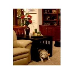 Don't let an ugly wire crate come between you and spending time with your best friend. This End Table Pet Crate doubles as furniture, so your dog can be right where the action is and your living room will still look great. Handcrafted with care and attention to detail, with classic lines and a rich finish, this crate looks refined and beautiful in any home. It's just the thing when company comes, or when it's time to settle in for nice, quiet evening. Features: · Uncompromising quality for lasting durability · Poplar hardwood construction with a water based, Eco-Friendly finish · ExtiraTM MDF waterproof crate floor will not absorb liquids or odors · Accommodates standard crate pads and cushions (not included) · Swing-through door fastens shut or rotates inside for den-like, open access · Attractive (yet secure) hardware · Easy to assemble · Made in the U.S.A. Item Specifications: Size: Medium (18"L x 24"W x 27"H) Large (24"L x 36"W x 27"H) Color: Antique Black Mahoganyw