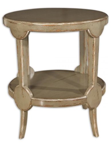 Uttermost End Table 25553Sustainable grown mango wood hand finished in charcoal with silver leaf accents.Width: 26.00Height: 28.50Weight: 29.00Finish: Wood Finishes