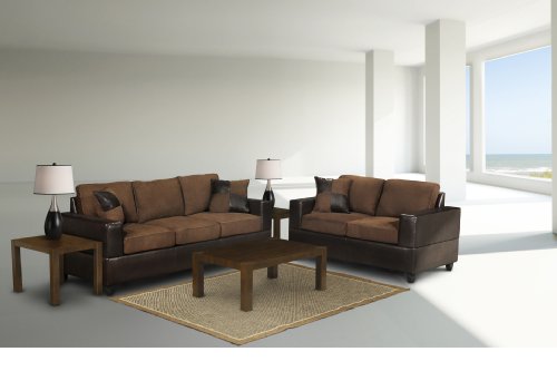 Seattle 7-pcs Living Room Set in Chocolate Color. (Package include Sofa, Loveseat, 3pcs Coffee End Table and 2 Contemporary Lamps MSRP99) Review