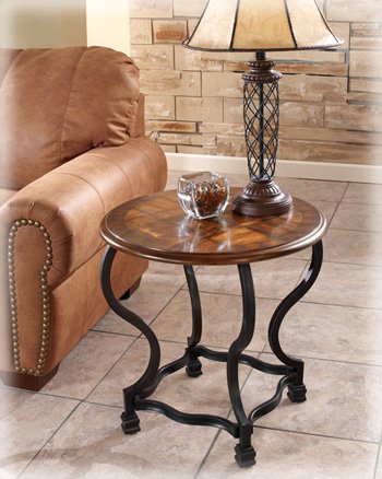 The durable construction of the "Wycliffe" accent table collection is the perfect venue for the sophisticated Old World design that this furniture captures beautifully. The rich burnished finished table tops features the beauty of decorative inlay border frames surrounding a basket weave inlay with a sand shade color. The Old World beauty is further brought to life with the flowing shape of the wrought tubular metal base. Transform your home with the sophistication of the "Wycliffe" accent table collection.
