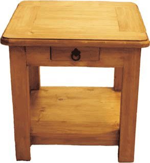 FREE SHIPPING!! This handcrafted pine wood end table will look great in your living room, from our mexican rustic furniture collection. Features include handmade from 100% pine wood, 1 small drawer, and fitted with forged iron metal handles to add a rustic look. Dimensions: 24"L x 24"H x 24"D Color: Medium Honey
